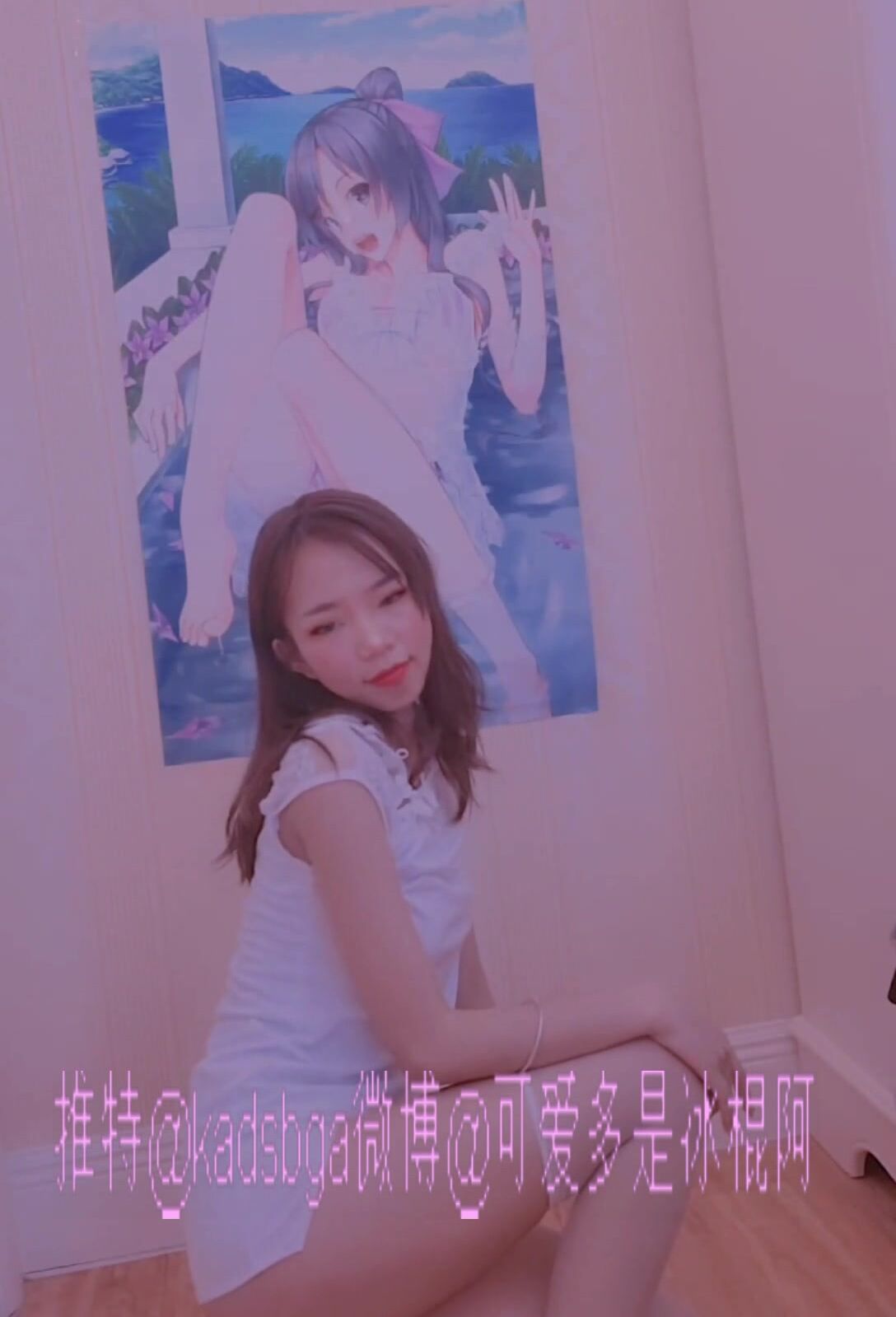 推特上著名抖音風福利姬可愛多是冰棍阿-露臉白色短款旗袍韓舞