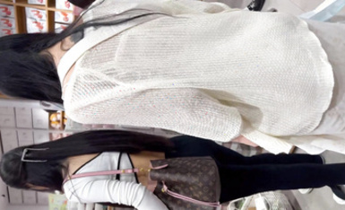 商城尾随两个买水杯时尚小迷妹 透过带血窄内看到肥凸的阴部轮廓