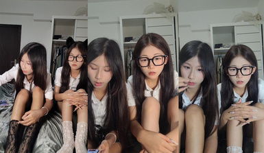 【糯米和小虫】清纯眼镜19美少女①,姐妹花一起,一脸呆萌卡哇伊,JK装短裙,没穿内裤看嫩穴,翘起美臀,叠罗汉掰穴特写